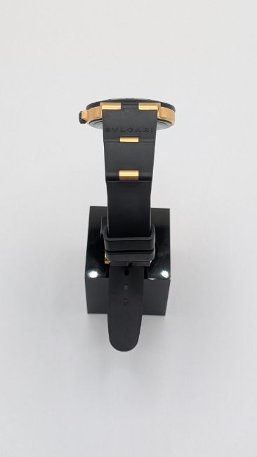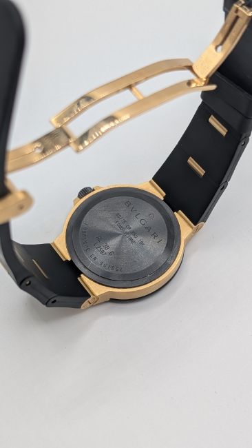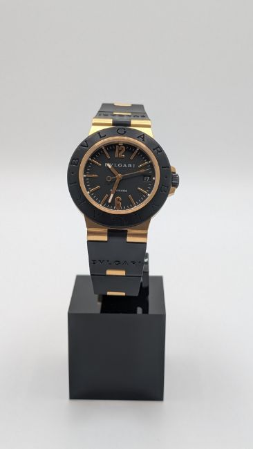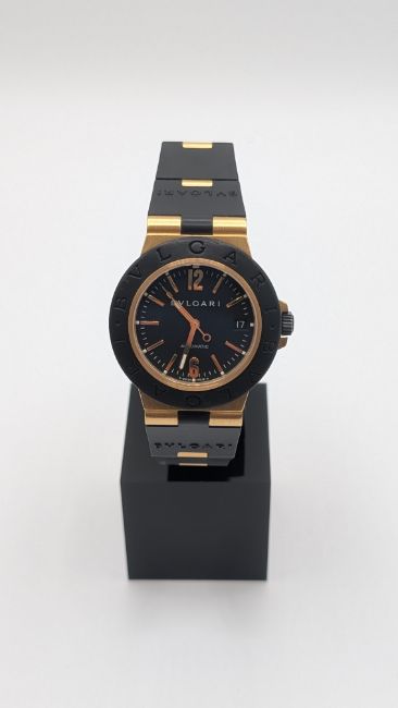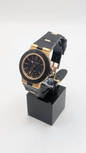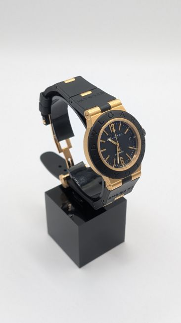 Bulgari Diagono AL 38 G, Yellow Gold/ black dial with gold/rubber strap